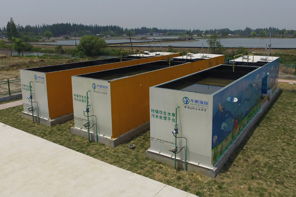 “高效仿生水草污水處理平臺”是針對鄉鎮、農村等中小型污水處理項目開發的,是脫氮除磷村鎮污水處理專利技術(專利號ZL201310179893.6)的良好應用。該平臺改變了現有很多小型生活污水處理裝置雖然結構上實現了一體化,但附屬設備多、結構不緊湊、抗沖擊負荷差等缺點。