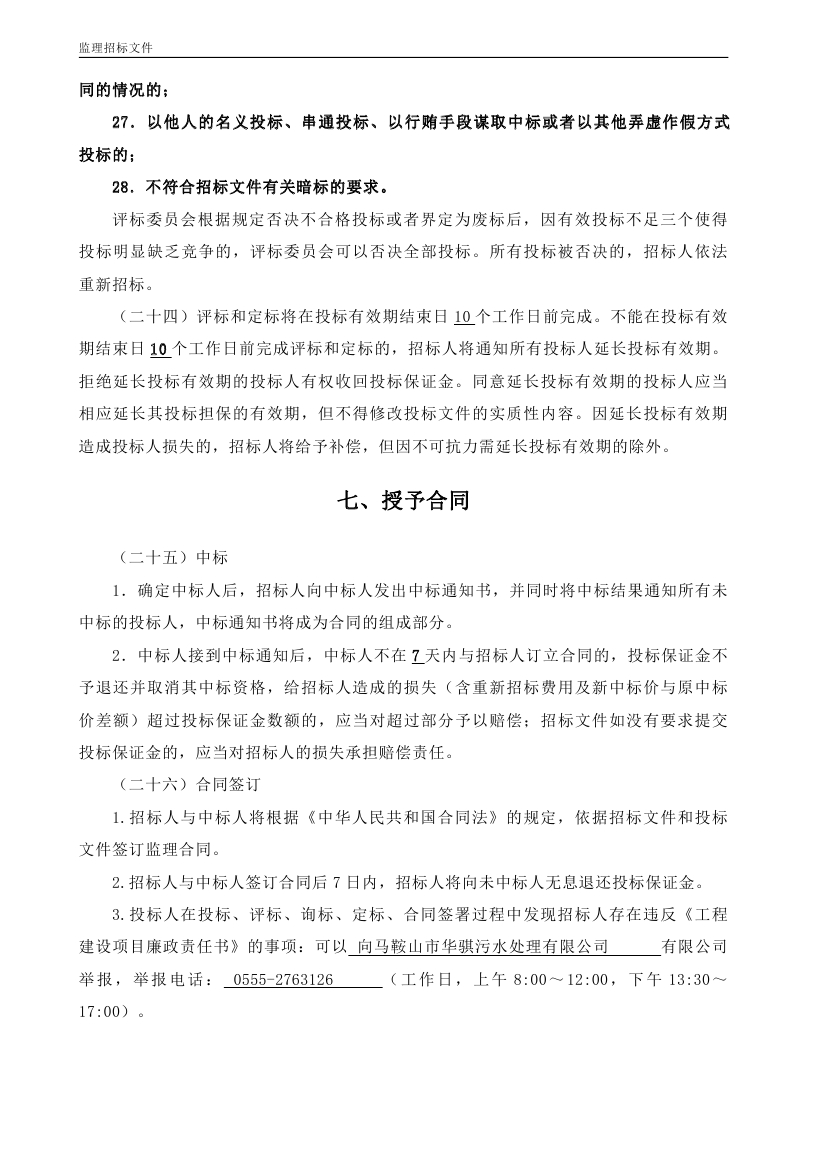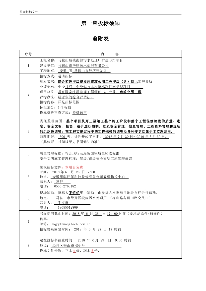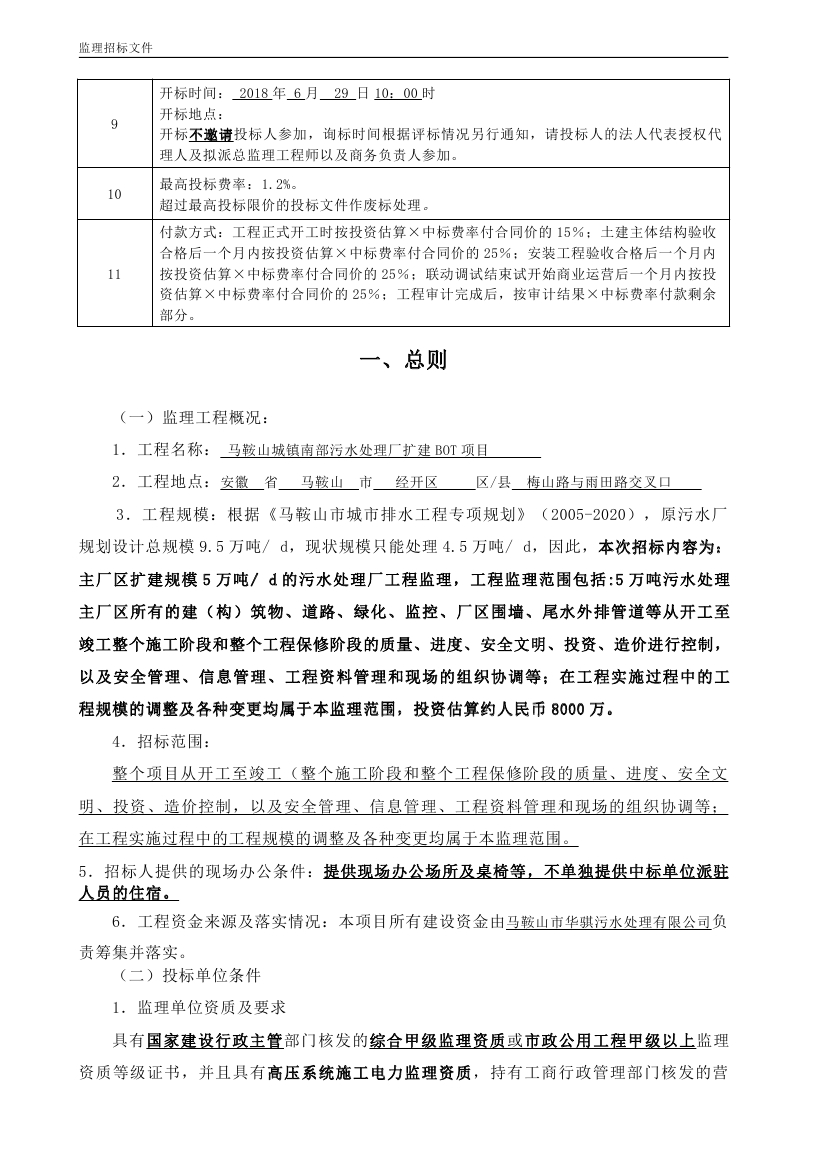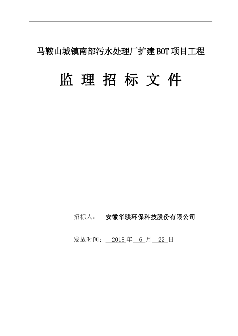 馬鞍山城鎮南部污水處理廠擴建BOT項目工程監理招標文件