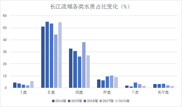 再者,在2014年至2018年的5年內,長江流域水質變化如何呢?