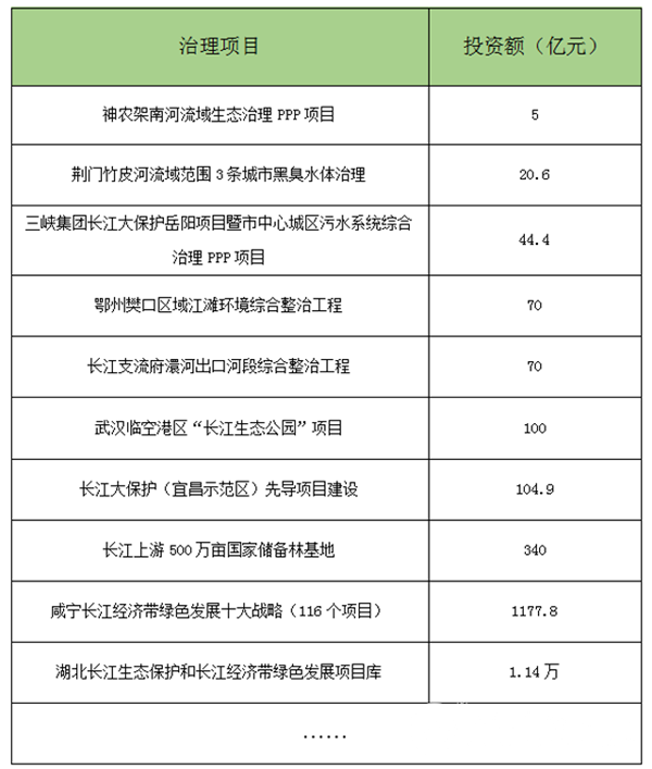 當然,長江生態環境保護作為一個系統性工程,要打一場持久戰,其資本投入體量一定是巨大的,僅從部分治理項目的投資上就能看到端倪。