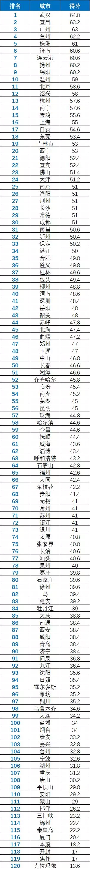 2019年,環保公益組織公眾環境研究中心通過搜集政府公開信息,對全國120個環保重點城市的水質信息公開進行評價,該表為水質信息公開指數排名,排名越靠前公開質量越高。