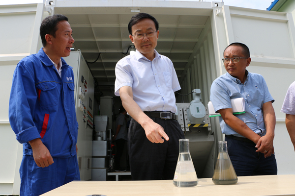 昨日,合肥市副市長王民生一行視察安徽華騏環保科技股份有限公司“合肥南淝河流域應急污水處理服務”紅旗泵站。