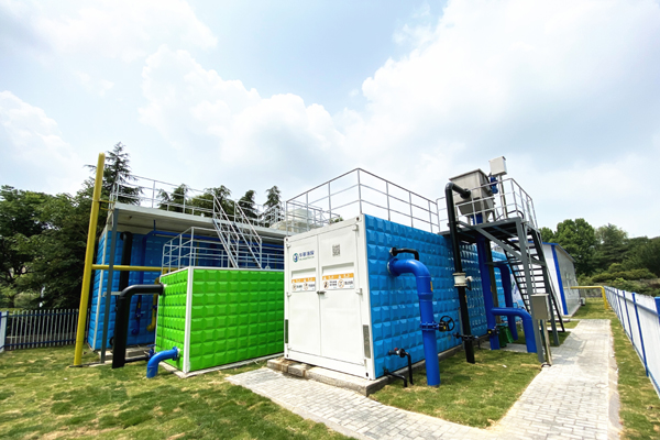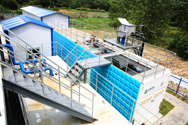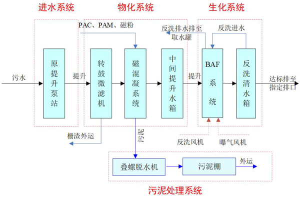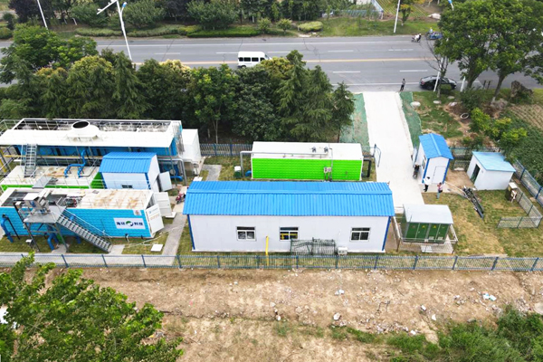 泗陽縣經開區泗塘河文成路水質凈化站,位于文成東路與泗塘河交口東北角,泗陽仁慈醫院以東,實際占地約837.2㎡,設計處理能力2000m3/d,采用磁混凝系統+曝氣生物濾池系統的主體工藝處理截流污水。站區內的進水接自河道旁的原提升泵站,出水通過觀察井流入泗塘河。