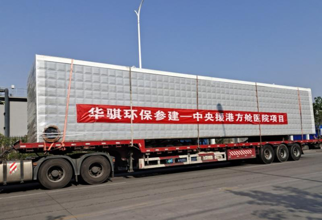 4月11日上午8時18分,12輛滿載著22臺新冠廢水及伴生廢氣與污泥全系統處理設備的貨車緩緩駛出安徽華騏環保科技股份有限公司(以下簡稱“華騏環保”)大院,支援中央援港方艙醫院二期項目建設,以硬核產品助力香港戰“疫”,充分展現了抗擊新冠疫情中的“馬鞍山力量”。