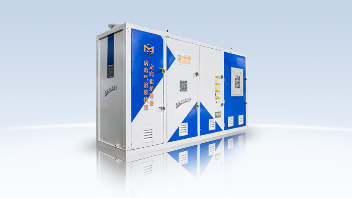 病毒氣溶膠快速定向狙殺裝備采用高效過濾器截留、紫外耦合高能離子束定向狙殺、活性炭吸附的技術,達到病毒消殺及除臭目的。