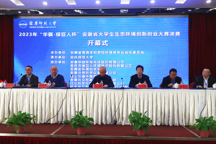 2023年11月25日,由安徽省普通本科高校環境類專業合作委員會主辦,安慶師范大學承辦,安徽華騏環??萍脊煞萦邢薰緟⑴c協辦的2023年“華騏-綠巨人杯”安徽省大學生生態環境創新創業大賽決賽成功舉行。參賽隊伍匯聚了來自中國科學技術大學、合肥工業大學、安徽工業大學、安徽大學、安徽師范大學、安徽農業大學、安徽理工大學等20個院校的師生代表260余人。
