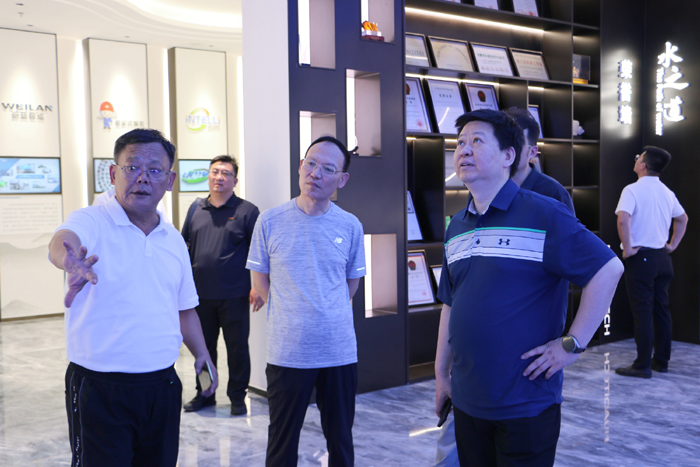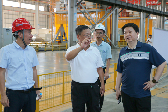 7月28日,中車產業投資有限公司黨委副書記、總經理陳明軍一行來到安徽華騏環保科技股份有限公司及其全資子公司安徽華騏蔚藍智能裝備有限公司進行交流訪問。中車產投副總經理陳國棟陪同訪問。